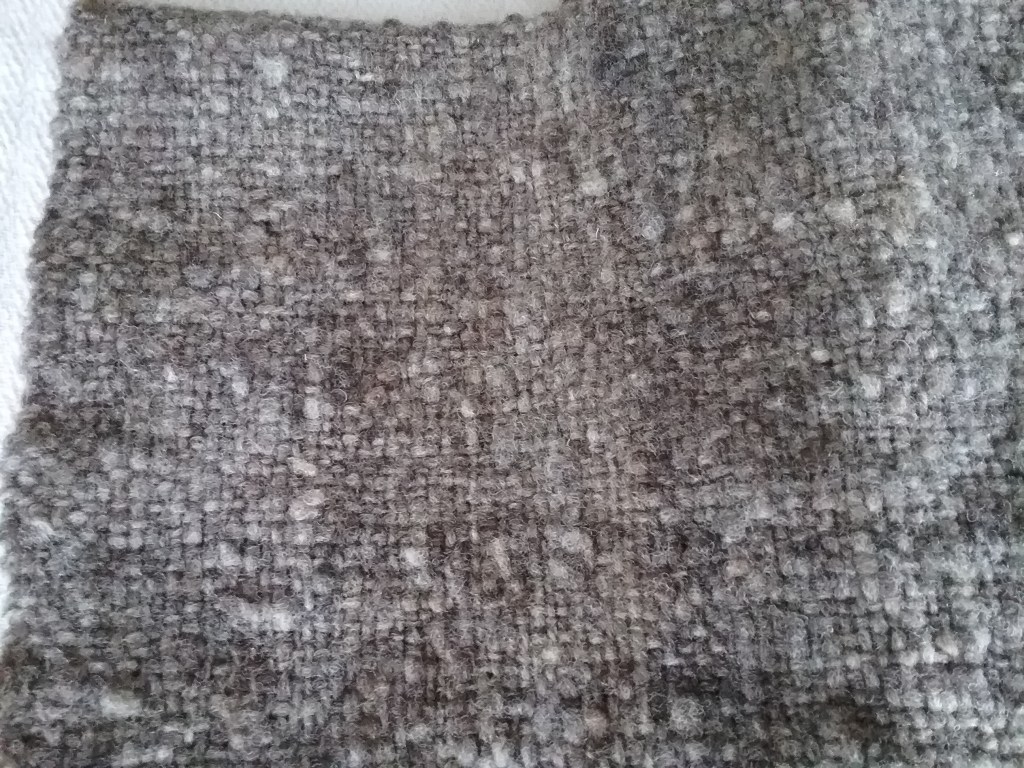 I still had a lot of Ryeland wool after knitting the gloves and cowl and wanted to turn this into a jumper. Although I do enjoy knitting, I’m not a very fast knitter and don’t have much patience when it comes to large projects, so I decided to weave it instead with the intention of using a basic jumper pattern from my Saori weaving book. I still have another length of fabric to weave before I can sew it together, but I was very happy with how the fabric turned out – it is incredibly soft and has a very natural look.