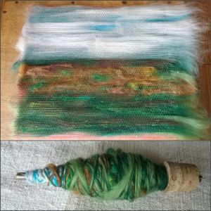 Tour de Fleece week 2 has been a little less varied than week 1. I began the week by experimenting with turning a landscape into yarn inspired by Ashford’s blog. The rest of the week was devoted to Clun Forest spinning. I have a weaving project in mind for this which will require thin warp threads, so I’m spinning thinner singles than I have spun before. Although I get more length this way, it means the bobbin takes longer to fill, so I haven’t got round to plying yet – hopefully next week. Below are my daily progress photos from days 9-15 (4th July – 10th July).
