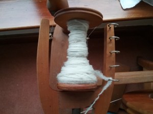 Day 12: Starting to spin up the first basket of Clun Forest rolags