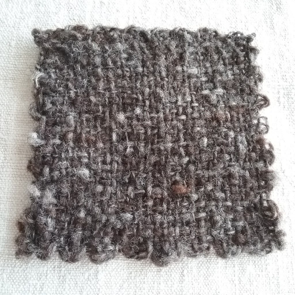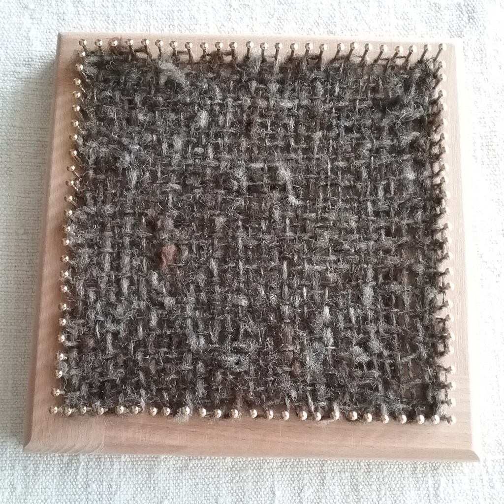 The square was then taken off the loom and washed to allow the fibres to full (fluff up and fill the gaps).