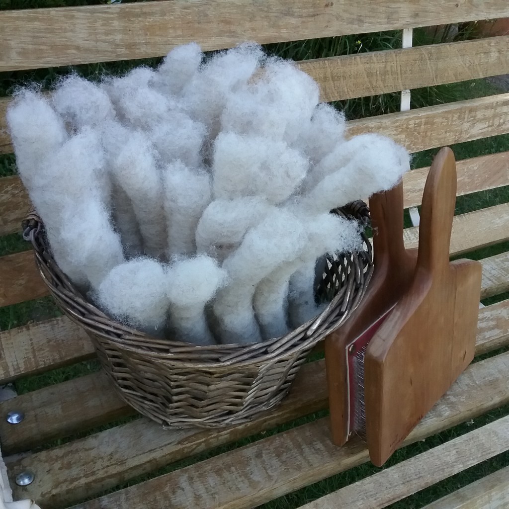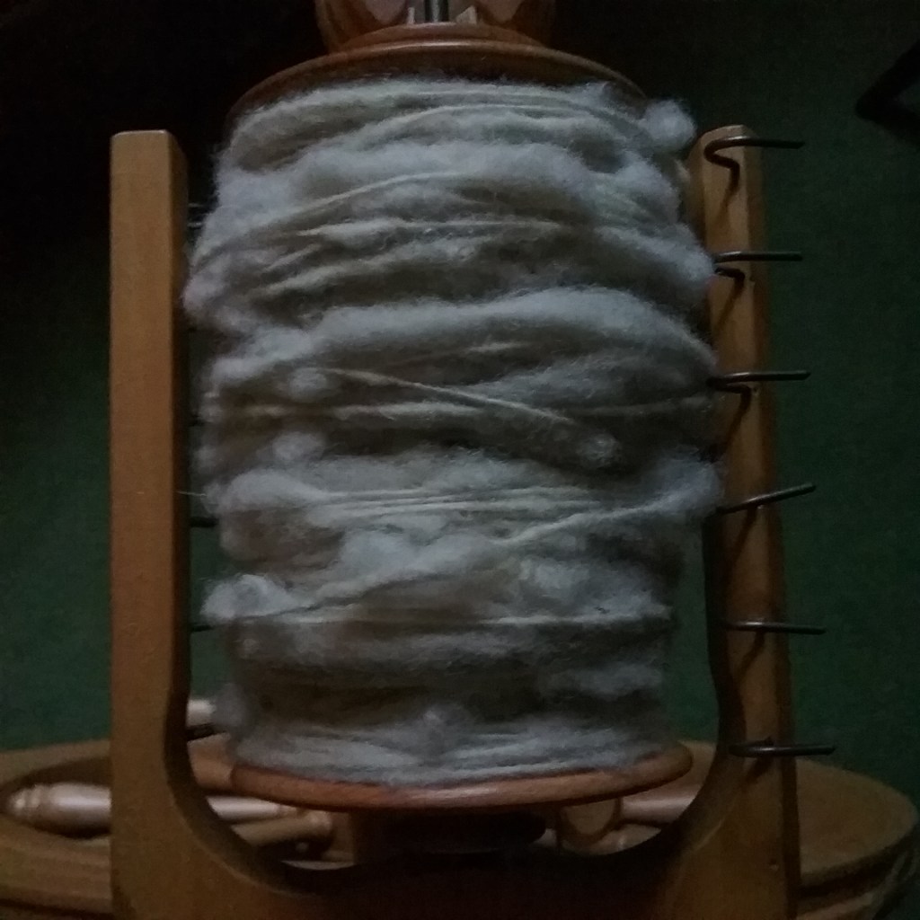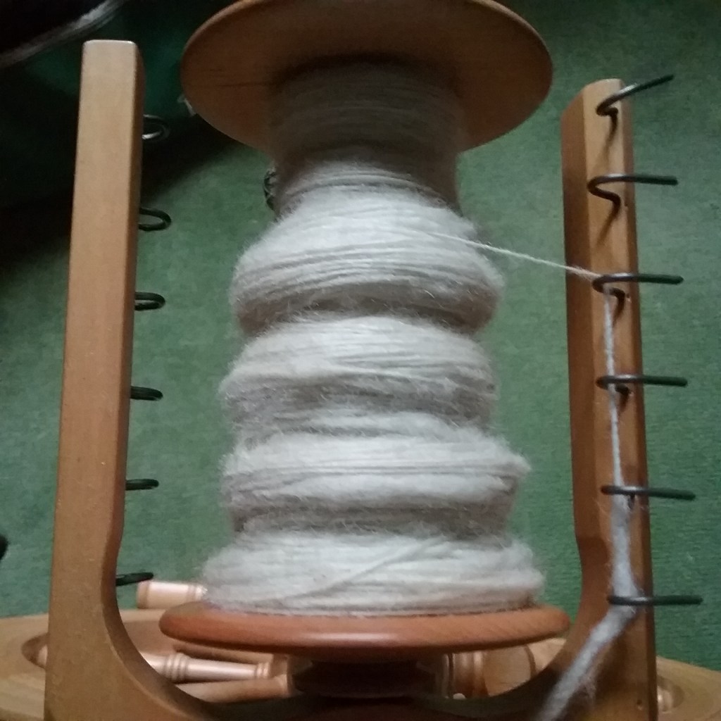 The first week of Tour de Fleece has flown by, but I feel I have made some inroads into my stash. I began by spinning up a small amount of an unknown fleece that has been in my stash since it was given to me. I decided to use this fleece to road test my DIY wool combs (blog post to follow after TDF). I also experimented with some unusual fibre and made a start spinning a Hampshire Down fleece (because it happened to be the nearest to my wheel at the time!). Below are my daily progress photos from days 1-9 (1st – 9th July).