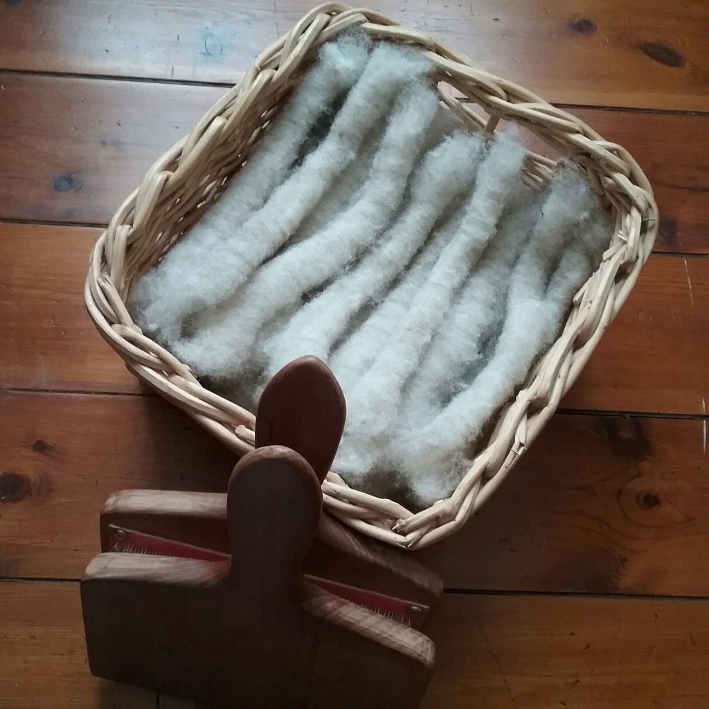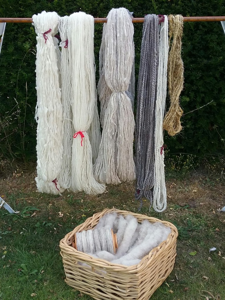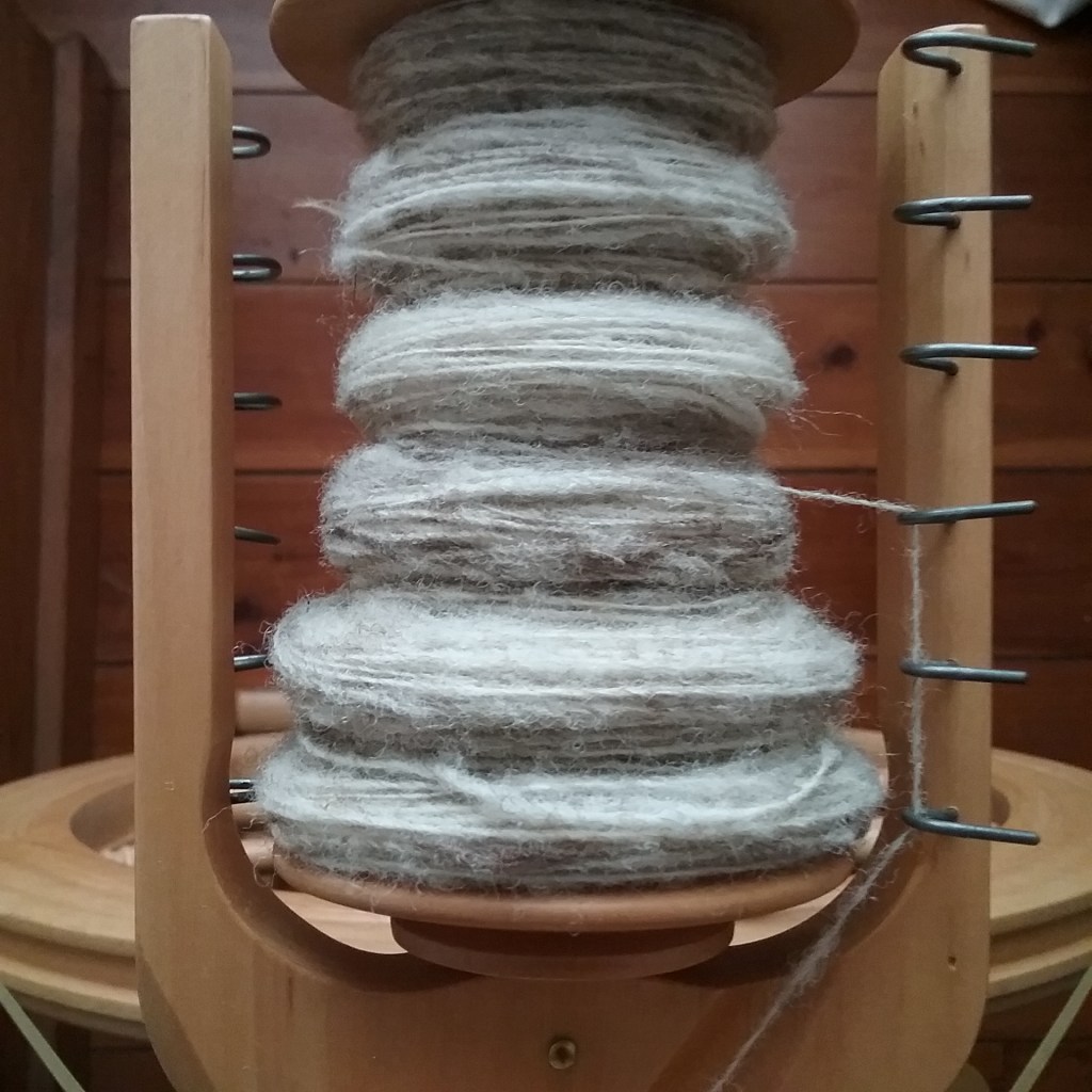 My goal at the start of TDF was to make a big dent in my fleece stash and once again I was a little too ambitious! I didn’t manage to process a whole fleece as I’d hoped, but I made a good start on the Hampshire Down (for which I have a project in mind). I did lots of testing for my DIY wool combs which are nearly finished and also processed some smaller quantities of fleece from my stash that I had put aside while I had other projects on the go. I found it much easier to get into a daily routine of spinning this year and although I challenged myself to do 1 hour of TDF per day, I ended up running over this by an hour or so most days. I re-discovered my love of spindle spinning (most of my work has been on the wheel since last TDF), attempted plying on the spindle for the first time and learnt how to wind and use an Andean plying bracelet. All in all, a very productive 24 days and I’m already thinking about next year’s challenge!