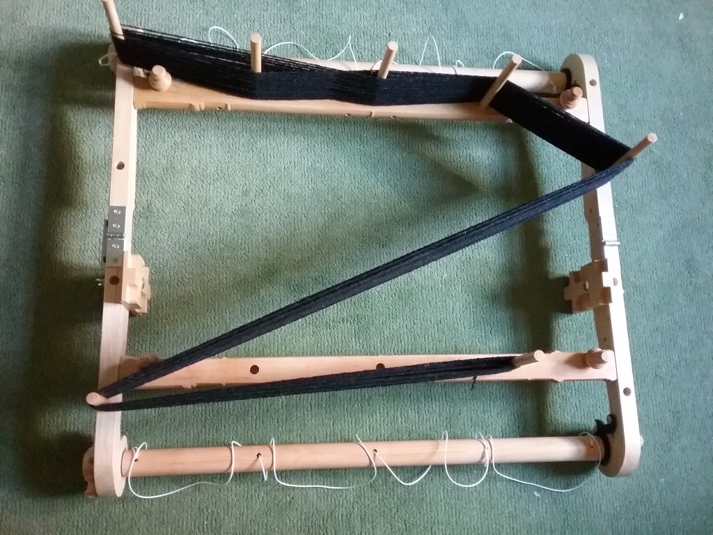 I was intimidated by indirect warping for a long time, but it is definitely easier than walking back and forth between the loom and the peg! I’ve yet to thread my Saori loom as the black warp that came with it has lasted a long time, but after getting used to warping on the rigid heddle I’m much more confident about doing it on a larger scale!