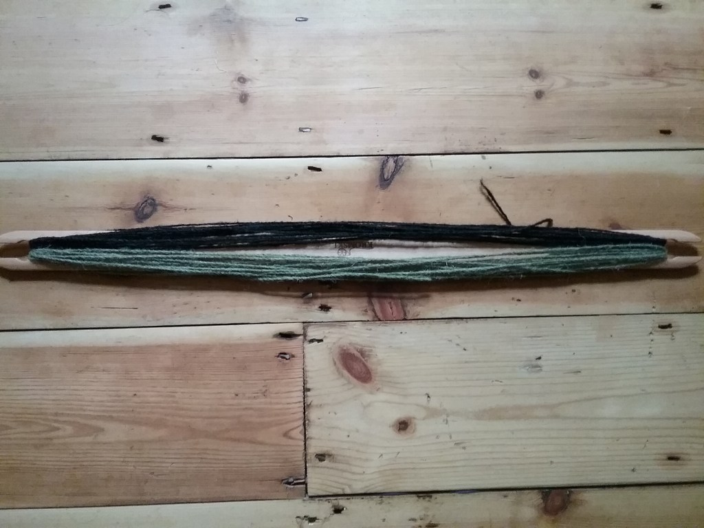 In my previous WIP post I had cast on a secret project for a gift which I realised a little too late was going to take a small eternity to knit if I continued using such a thin yarn. So, I frogged the project and then decided to ply the yarn on my wheel giving me a thicker two ply that was much better. Any yarn I haven’t spun myself I purchase mostly from charity shops selling the ends of yarn cones, but these tend to be quite thin (often intended for knitting machines), so plying two or more strands together can make the yarn a more suitable size or colour for a project without having to buy another ball of wool. This project is now finished, but the reveal will have to wait until later in the year.