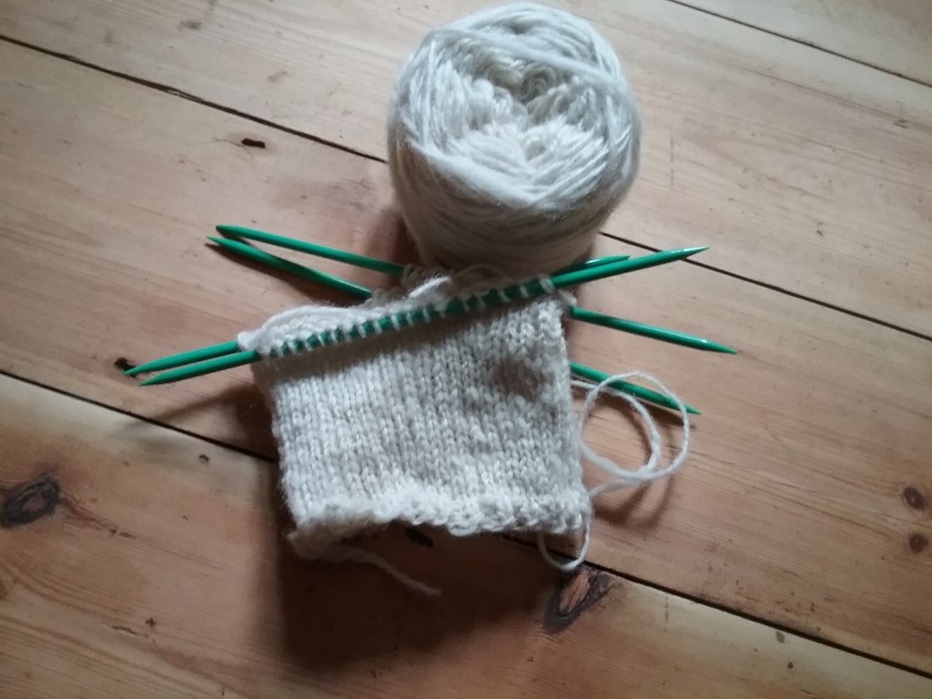 I have also cast on another little project, this time using my hand spun, but it may need some fiddling to get the size right.