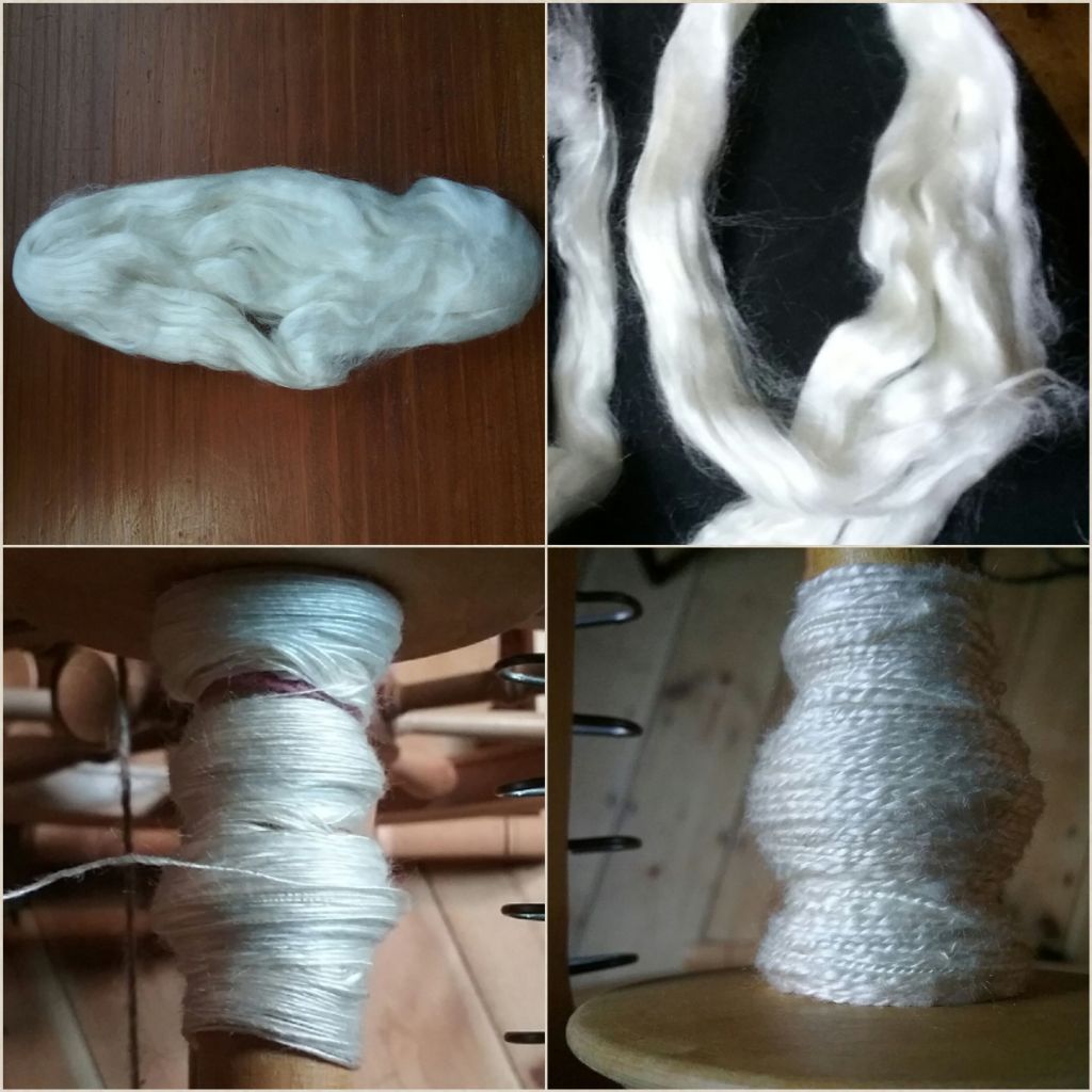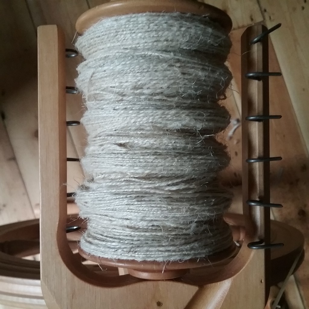 I’m now over the halfway point of TDF and am pleased with my accomplishments so far. After making good progress on the Hampshire Down last week I was able to finish carding, spinning and plying the rest of the fleece this week. It’s been satisfying to see the fleece I started carding and spinning last TDF finally turn into finished yarn after I put it to the side while working on other projects. I didn’t vary my spinning as much this week, but did experiment with spinning hemp and rose fibre. With the Hampshire Down now finished, I’m hoping to spend the final week making progress on the spindle project and luxury fibres from my list.