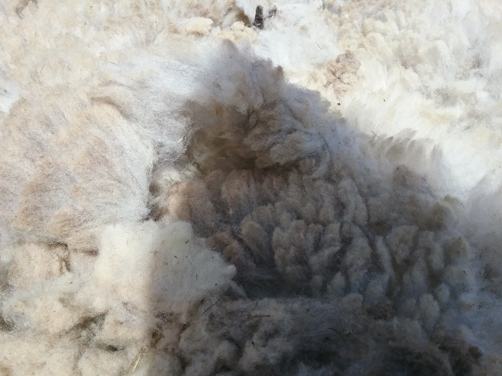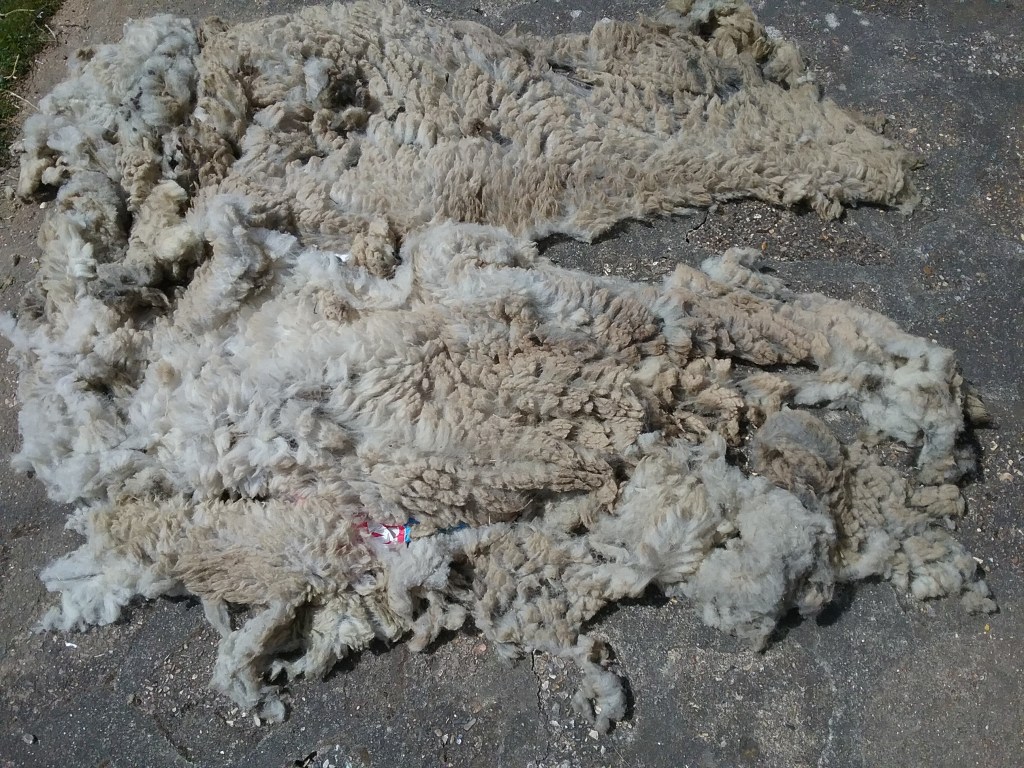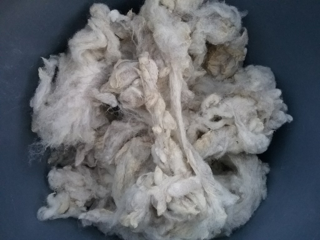 This fleece was washed in my suint bath (and was quite challenging to lift out when wet as I had forgotten that rams are larger than ewes, so the fleece was much heavier when wet!). The suint bath removed most of the grease and in the absence of a lingering suint smell, I decided to forgo a wash in detergent.