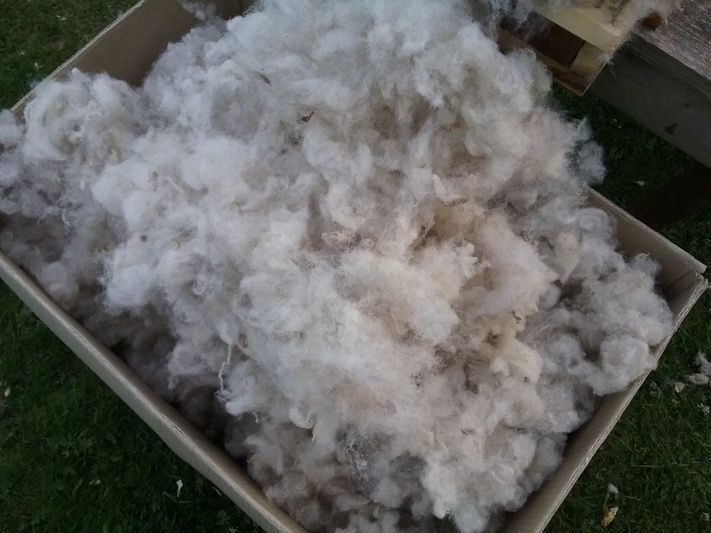 After washing and drying I noticed the fleece was a little tangled and still seemed to have quite a bit of dust. I decided to put it through my wool picker and open up the fibres to make carding easier and remove most of the dust. This worked perfectly, although I did find that the shorter staple fibres needed removing from the teeth at times.