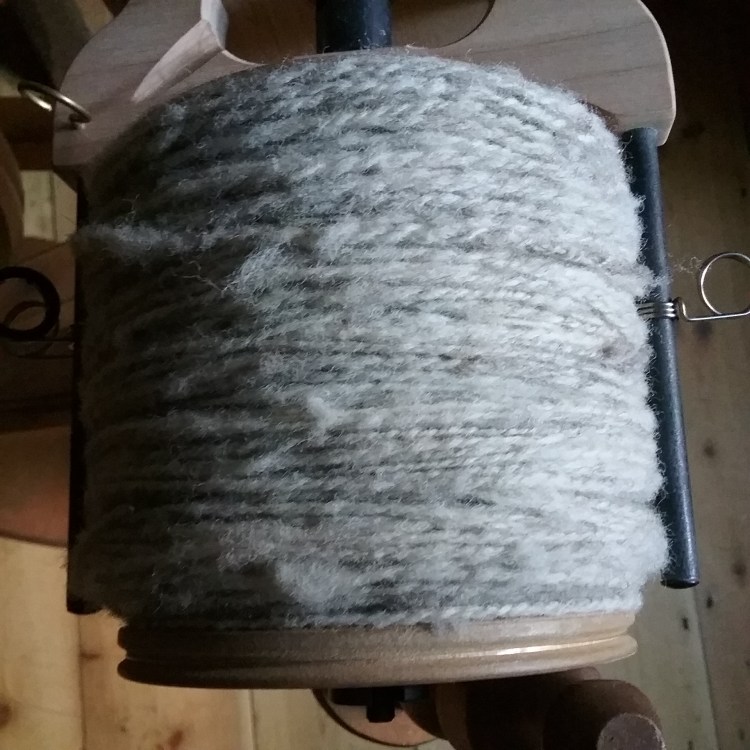 The Hampshire Down is probably the shortest staple fleece I’ve worked with so far and I was concerned that spinning might have been more challenging, but was pleased to find this was not the case. I had good control with a long draw, using my other hand to even out any slubby areas and remove any large nepps as I spun. Since this yarn is destined to be woven, I needed to spin thinly to accommodate both plying, but also any fulling after washing. To that end, I decided to use my Kromski wheel as it was set up for spinning thin yarn and the double treadle gives a little more control. My carding hadn’t quite removed all the nepps in the fleece (they are harder to locate in fleeces with shorter fibres) and I left some in to help maintain the character of the fleece. Securing the nepps was harder than usual since the surrounding short fibres didn’t hold as much twist which caused several yarn breakages until I’d got the balance right.