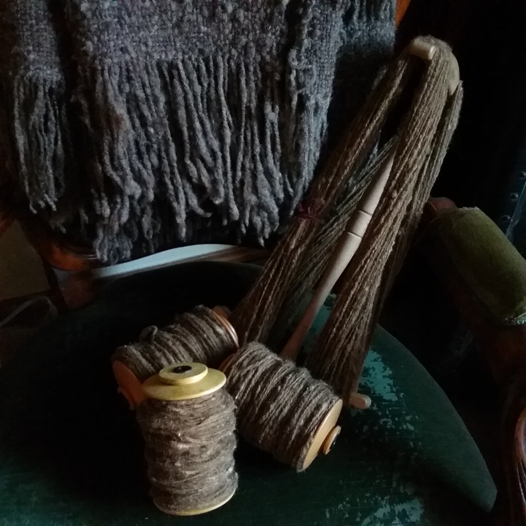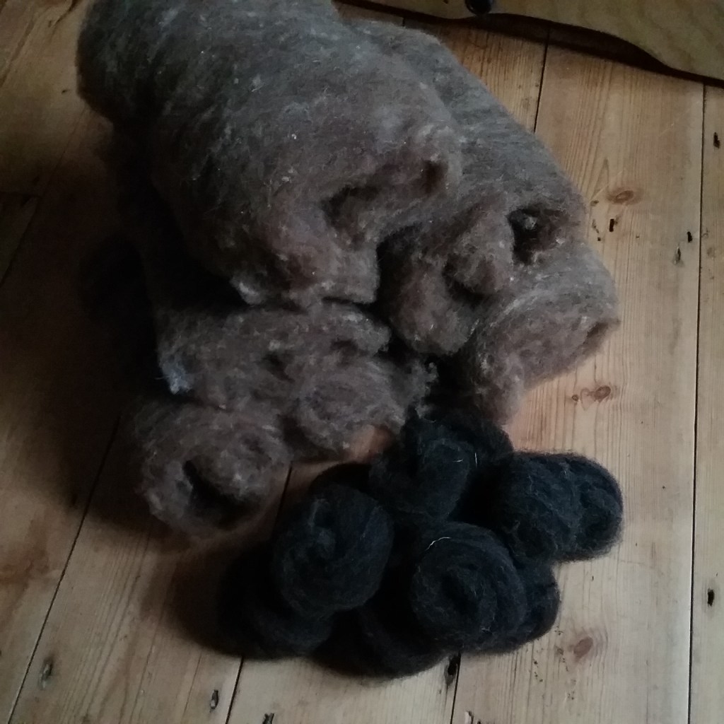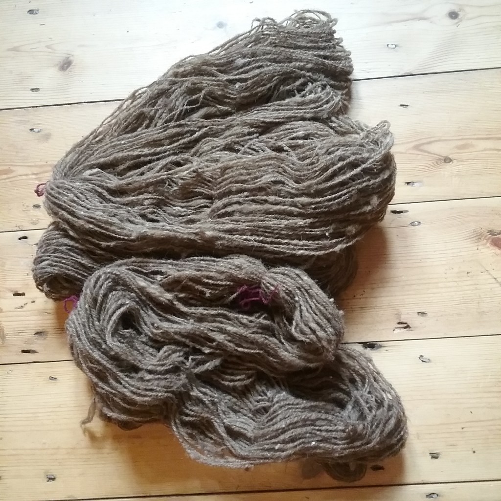 My fibre processing has been quite repetitive this week with my focus on getting the rest of the Castlemilk Moorit processed, spun and plied. It’s the first time I’ve processed a whole fleece start to finish during TDF; the Castlemilk Moorit is one of my smaller fleeces, but it has been in my stash since the early days of my blog so it’s satisfying to know it’s finally ready to be turned into something (but it doesn’t make for the most varied picture gallery!). I’ve made a start on the Black Welsh Mountain (BWM) too – combing is slow work, but quite meditative.