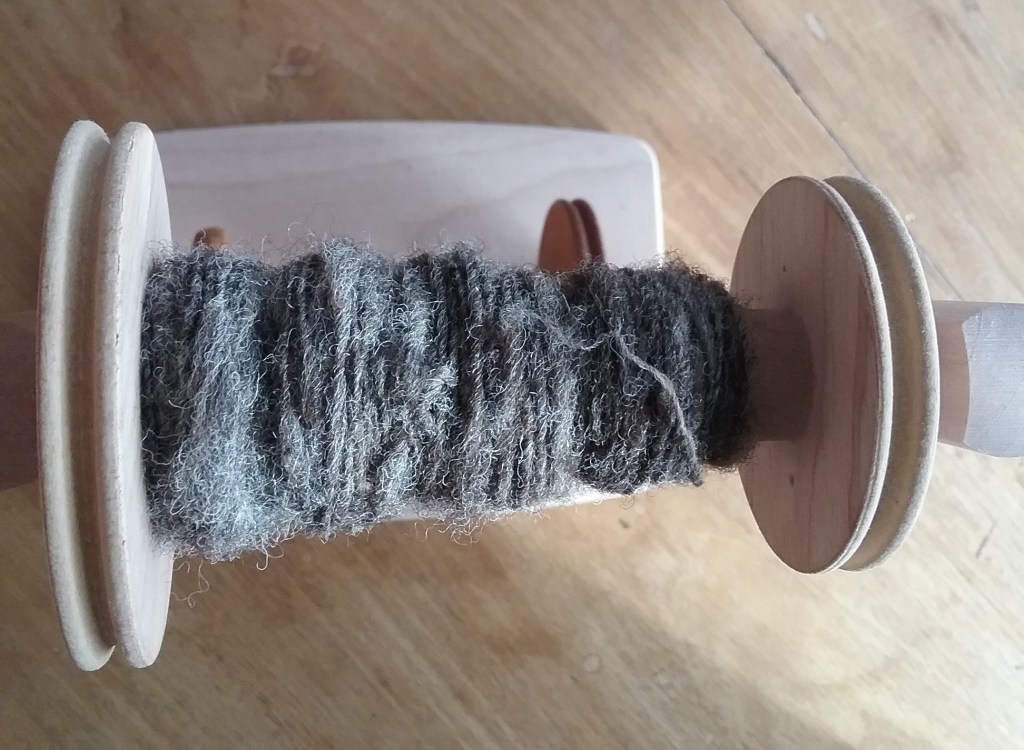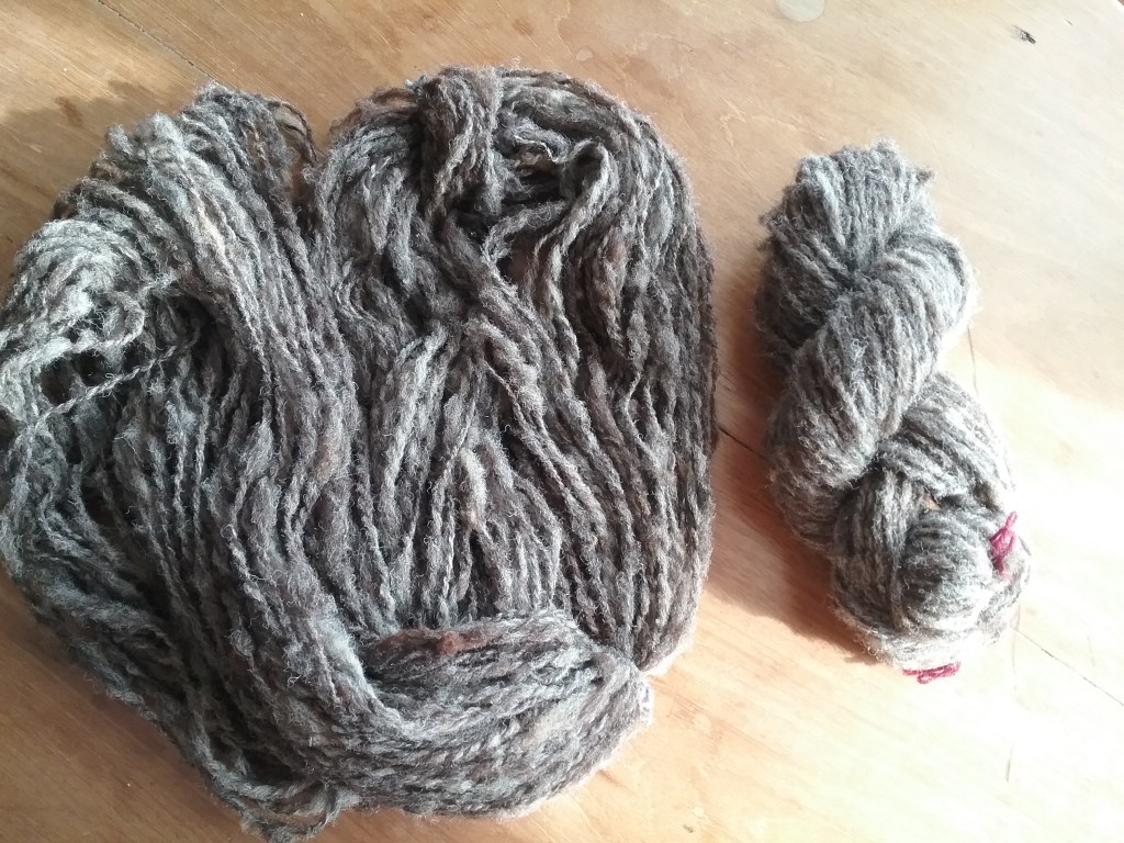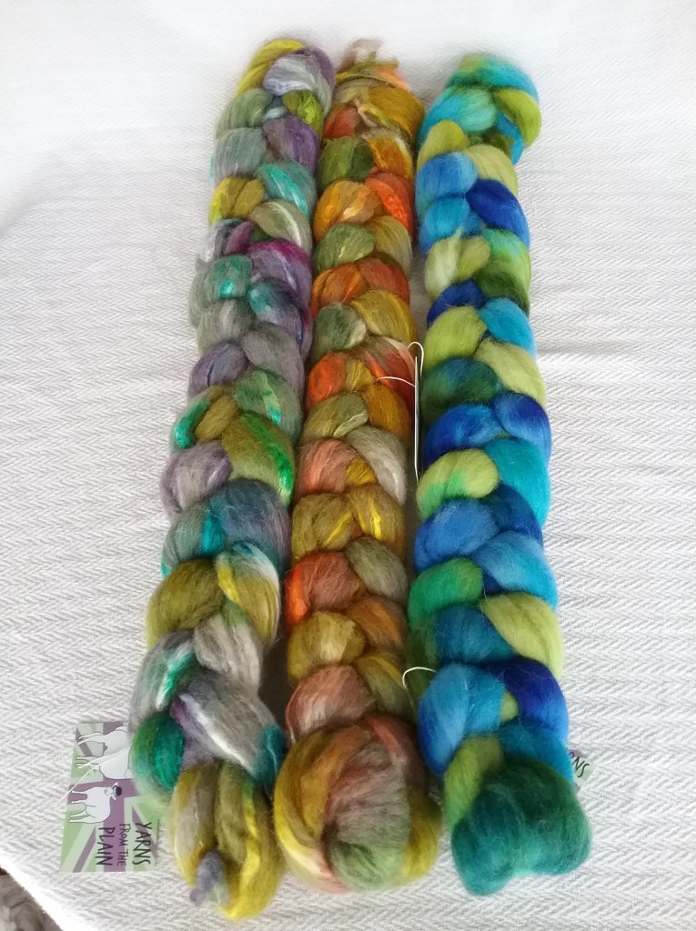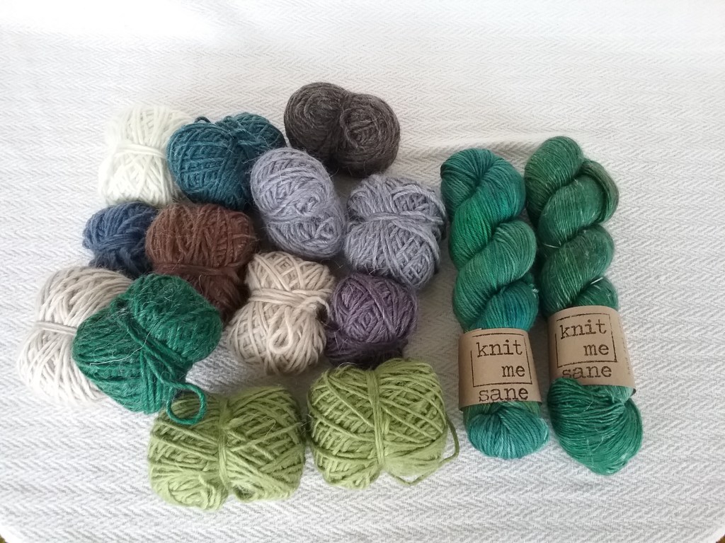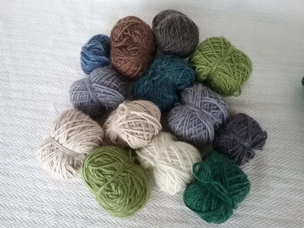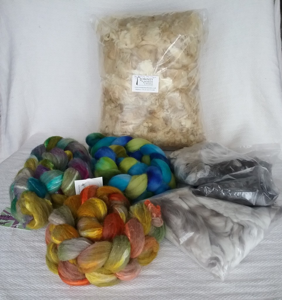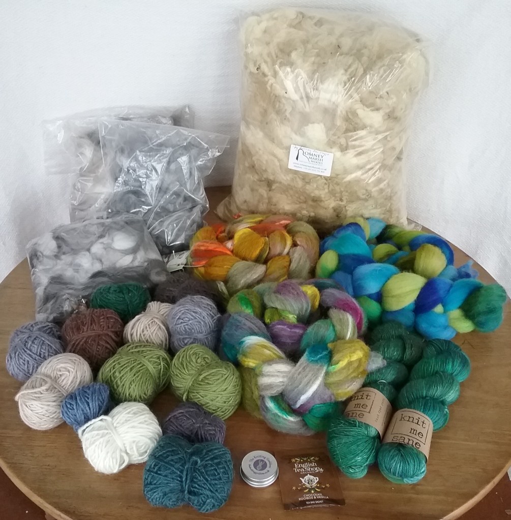 I try to be very selective when it comes to buying yarn as I have a stash of fleeces waiting to be spun, so it has to be different to justify me buying it! The beautiful green skeins (and complementary teabag!) are from Knit Me Sane, one is a Merino/Linen blend which I’m excited to work with and the other is made from Polworth wool. I also purchased a ‘scrappy bag’ of merino/mohair wool in various colours to experiment with from the Wensleydale Sheep Shop.