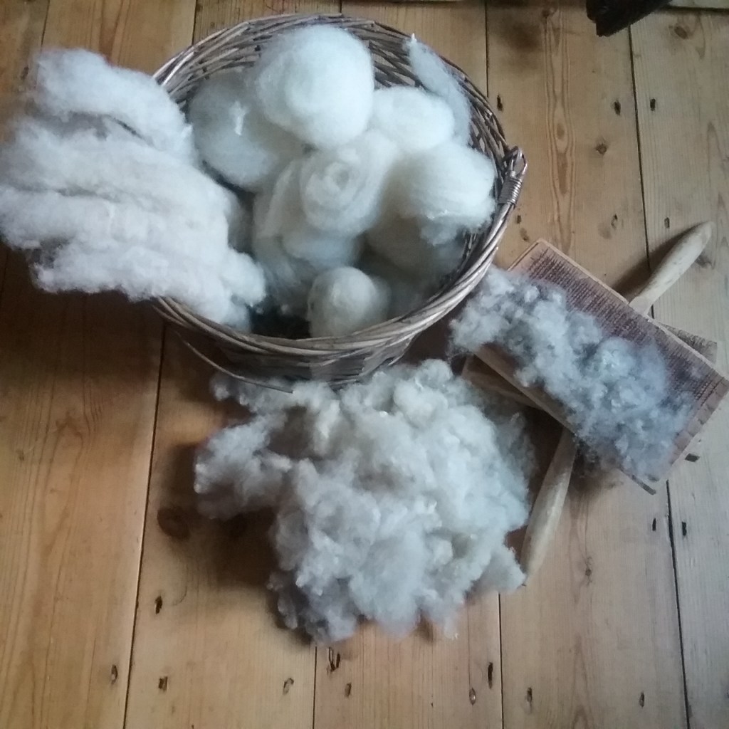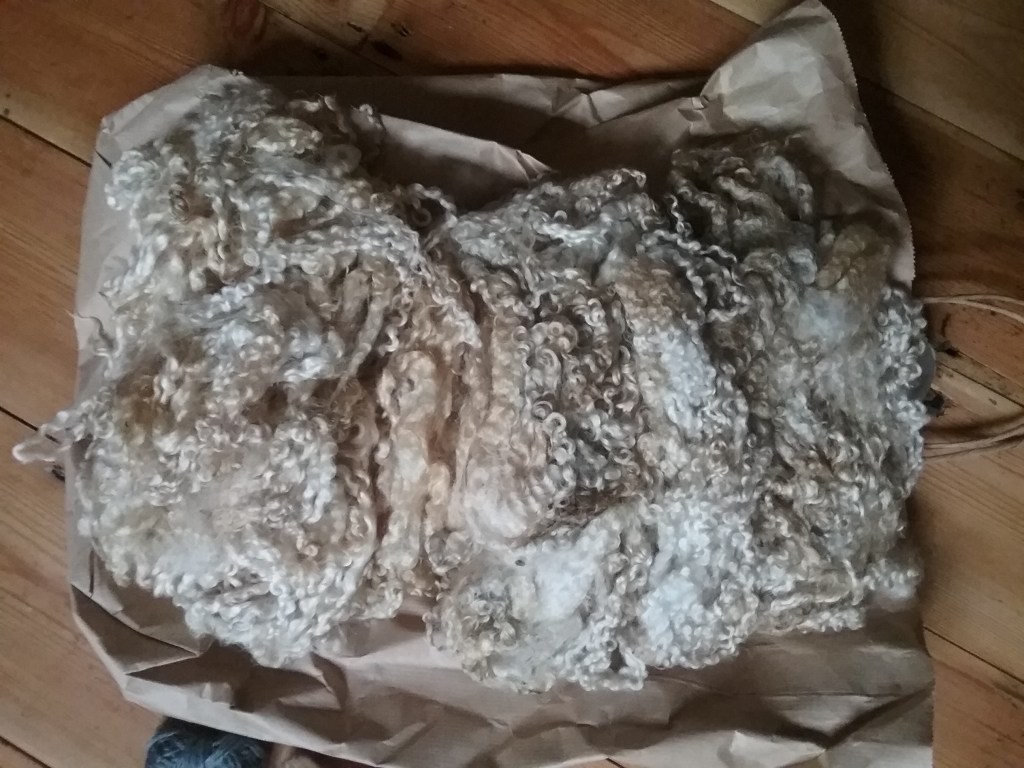 This fleece was an unexpected acquisition to my stash. I sent a fellow crafter a scanned copy of a vintage sewing machine manual, we got chatting about crafts and it turned out they kept Herwick sheep and wanted to send me some wool as a thank you, so a while later I received a fleece sized package in the post! It’s taken me a while to get round to working with it, so Herdy Lodge if you’re reading this, I hope I’m doing your fleece justice! Herdwick sheep come in varied shades and this one was a beautiful oatmeal with a grey and white overcoat. It wasn’t overly greasy and was fairly free of large VM so didn’t need much skirting before washing.