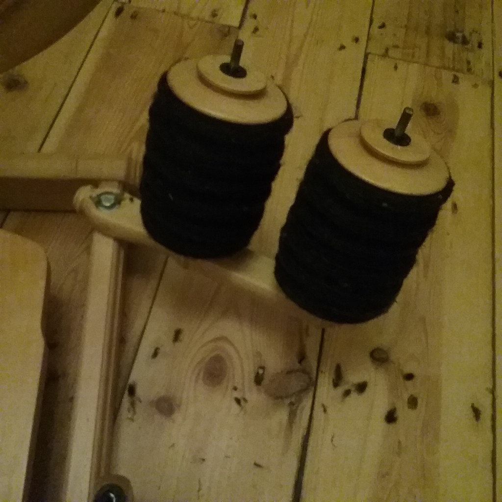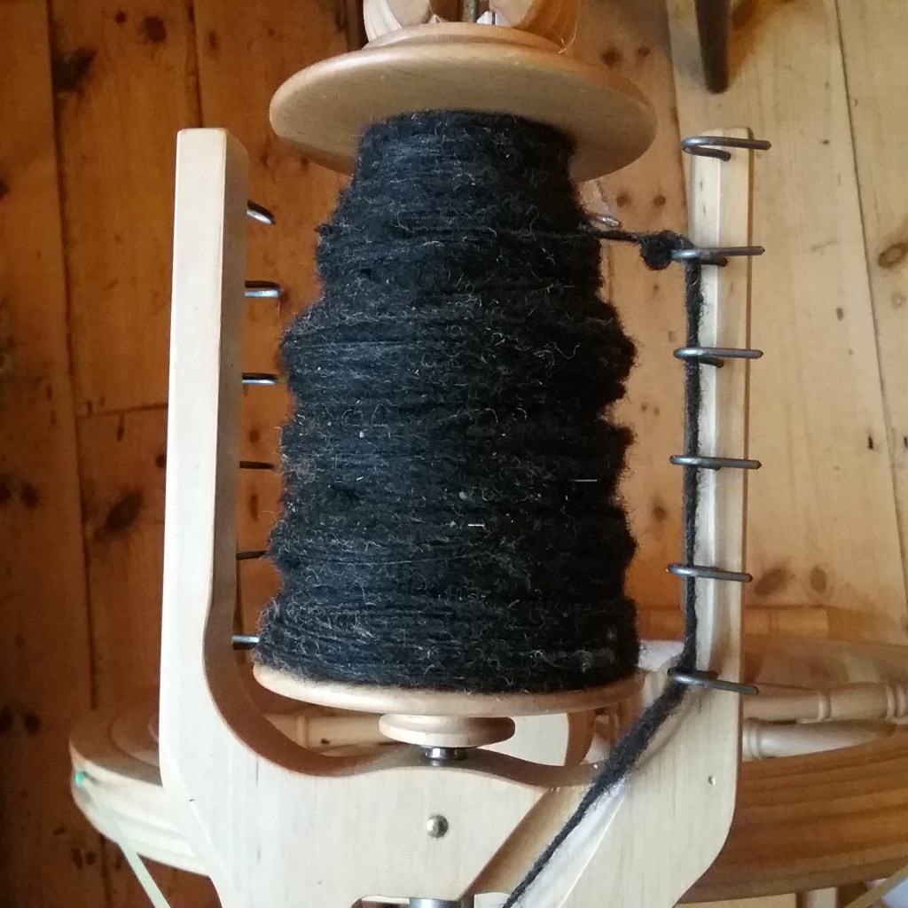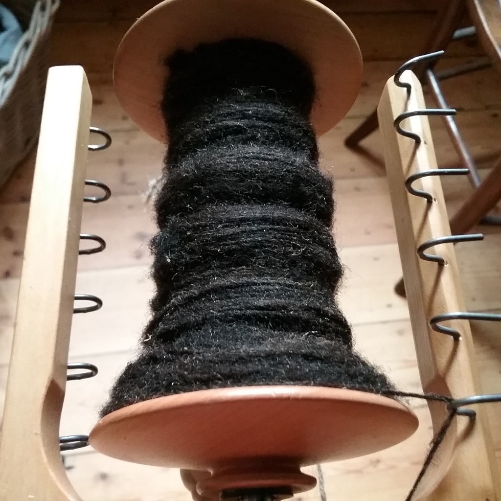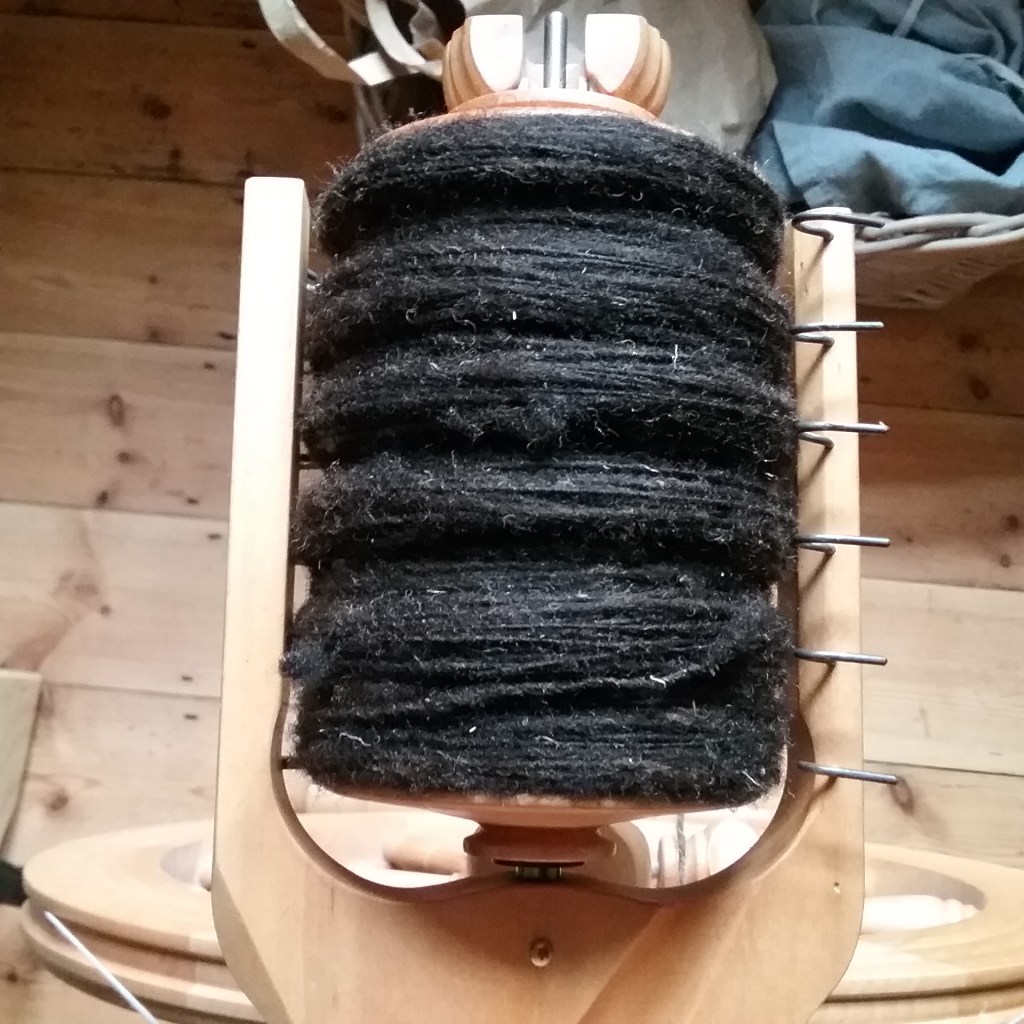 When I began drum carding I found the fibres were getting tangled around the licker brush. I wasn’t holding them back, so turned to the internet and discovered some people had this problem with fine fibres like alpaca and angora, but Herdwick is naturally coarser, so I examined my fleece again. When I looked closely at the undercoat I noticed that the fibres were actually finer than I had thought, an optical illusion caused by the overcoat. Since my drum carder is a standard 72tpi I followed the online advice the slow down my carding speed and this worked well, with the licker brush taking on only nepps and short cuts (which I cleaned off regularly). I began with doing two passes on the drum carder, but there didn’t seem to be much difference between one or two passes and since I was going to be spinning this very loose, I opted for only one pass through the drum carder. The resulting batts were light and fluffy and a significant amount of VM and dust was still dropping out at the bottom of the carder.